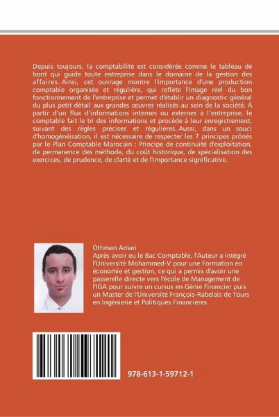 Depuis toujours, la comptabilité est considérée comme le tableau de bord qui guide toute entreprise dans le domaine de la gestion des affaires. Ainsi, cet ouvrage montre l'importance d'une production comptable organisée et régulière, qui reflète l'image réel du bon fonctionnement de l'entreprise et permet d'établir un diagnostic général du plus petit détail aux grandes oeuvres réalisés au sein de la société. À partir d'un flux d'informations internes ou externes à l'entreprise, le comptable fait le tri des informations et procède à leur enregistrement, suivant des règles précises et régulières. Aussi, dans un souci d'homogénéisation, il est nécessaire de respecter les 7 principes prônés par le Plan Comptable Marocain : Principe de continuité d'exploitation, de permanence des méthode, du coût historique, de spécialisation des exercices, de prudence, de clarté et de l'importance significative.