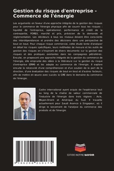 Les arguments en faveur d'une approche intégrée de la gestion des risques pour le commerce de l'énergie physique afin de couvrir tous les risques : liquidité de l'entreprise, opérationnel, performance et crédit de la contrepartie, FOREX, marché et prix, prévision de la demande et réglementation. Les décideurs à tous les niveaux doivent être conscients des interdépendances et prendre des décisions dans une perspective de bout en bout. Pour chaque risque commercial, cette étude tente d'analyser en détail les risques spécifiques, leurs méthodes de mesure et les outils de gestion des risques en s'inspirant de divers documents sur la gestion des risques et des pratiques existantes dans les compagnies pétrolières. Ensuite, en proposant une approche intégrée de la gestion du commerce de l'énergie, elle emprunte des idées à la littérature sur la gestion du risque d'entreprise (ERM) et les adapte au commerce de l'énergie. Il explore ensuite la nécessité d'une compréhension et d'un soutien de la part de la direction, d'une évaluation des risques de bout en bout et d'autres facteurs, afin de mettre en oeuvre avec succès la GRE dans le domaine du commerce de l'énergie.