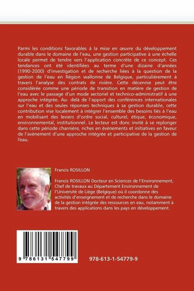 Parmi les conditions favorables à la mise en uvre du développement durable dans le domaine de l'eau, une gestion participative à une échelle locale permet de tendre vers l'application concrète de ce concept. Ces tendances ont été identifiées au terme d'une dizaine d'années (1990-2000) d'investigation et de recherche liées à la question de la gestion de l'eau en Région wallonne de Belgique, particulièrement à travers l'analyse des contrats de rivière. Cette décennie peut être considérée comme une période de transition en matière de gestion de l'eau avec le passage d'un mode sectoriel et technico-administratif à une approche intégrée. Au- delà de l'apport des conférences internationales sur l'eau et des seules réponses techniques à sa gestion durable, cette contribution vise localement à intégrer l'ensemble des besoins liés à l'eau en mobilisant des leviers d'ordre social, culturel, étique, économique, environnemental, institutionnel. Le lecteur est donc invité à se replonger dans cette période charnière, riches en évènements et initiatives en faveur de l'avènement d'une approche intégrée et participative de la gestion de l'eau.