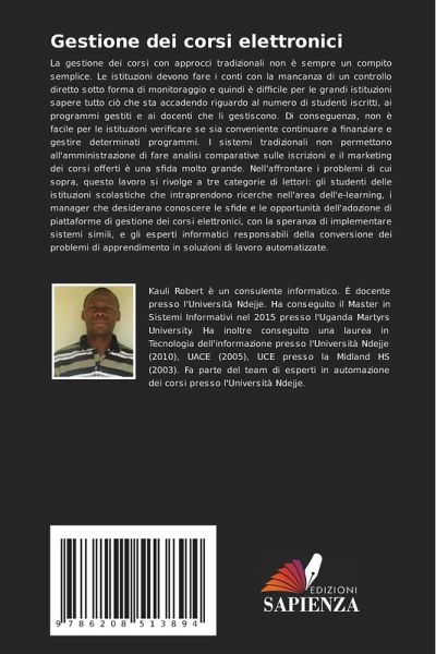 La gestione dei corsi con approcci tradizionali non è sempre un compito semplice. Le istituzioni devono fare i conti con la mancanza di un controllo diretto sotto forma di monitoraggio e quindi è difficile per le grandi istituzioni sapere tutto ciò che sta accadendo riguardo al numero di studenti iscritti, ai programmi gestiti e ai docenti che li gestiscono. Di conseguenza, non è facile per le istituzioni verificare se sia conveniente continuare a finanziare e gestire determinati programmi. I sistemi tradizionali non permettono all'amministrazione di fare analisi comparative sulle iscrizioni e il marketing dei corsi offerti è una sfida molto grande. Nell'affrontare i problemi di cui sopra, questo lavoro si rivolge a tre categorie di lettori: gli studenti delle istituzioni scolastiche che intraprendono ricerche nell'area dell'e-learning, i manager che desiderano conoscere le sfide e le opportunità dell'adozione di piattaforme di gestione dei corsi elettronici, con la speranza di implementare sistemi simili, e gli esperti informatici responsabili della conversione dei problemi di apprendimento in soluzioni di lavoro automatizzate.