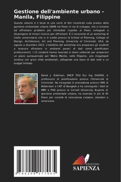 Questo volume è il terzo di una serie di libri incentrati sulla pratica della gestione ambientale urbana (UEM) nei Paesi in via di sviluppo, che si trovano ad affrontare problemi più immediati rispetto ai Paesi sviluppati e dispongono di minori risorse per affrontarli. È il resoconto di un workshop di livello universitario che si è svolto presso la School of Planning, College of Design, Architecture, Art and Planning, University of Cincinnati, USA, da agosto a dicembre 2015. L'obiettivo del workshop era preparare gli studenti a lavorare all'estero in ambienti poveri di dati come pianificatori professionisti. I 15 studenti hanno lavorato in team settoriali per preparare un piano quinquennale per Metro Manila, nelle Filippine, una megalopoli asiatica con gravi sfide ambientali, utilizzando una base di dati reali e un budget limitato.