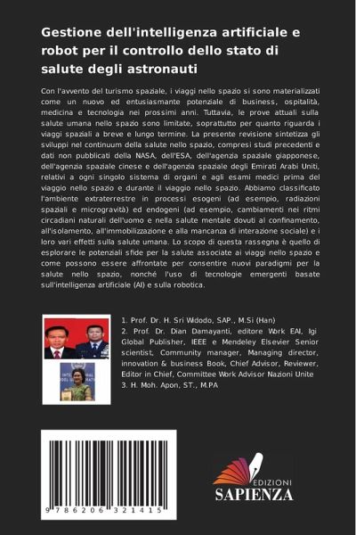 Con l'avvento del turismo spaziale, i viaggi nello spazio si sono materializzati come un nuovo ed entusiasmante potenziale di business, ospitalità, medicina e tecnologia nei prossimi anni. Tuttavia, le prove attuali sulla salute umana nello spazio sono limitate, soprattutto per quanto riguarda i viaggi spaziali a breve e lungo termine. La presente revisione sintetizza gli sviluppi nel continuum della salute nello spazio, compresi studi precedenti e dati non pubblicati della NASA, dell'ESA, dell'agenzia spaziale giapponese, dell'agenzia spaziale cinese e dell'agenzia spaziale degli Emirati Arabi Uniti, relativi a ogni singolo sistema di organi e agli esami medici prima del viaggio nello spazio e durante il viaggio nello spazio. Abbiamo classificato l'ambiente extraterrestre in processi esogeni (ad esempio, radiazioni spaziali e microgravità) ed endogeni (ad esempio, cambiamenti nei ritmi circadiani naturali dell'uomo e nella salute mentale dovuti al confinamento, all'isolamento, all'immobilizzazione e alla mancanza di interazione sociale) e i loro vari effetti sulla salute umana. Lo scopo di questa rassegna è quello di esplorare le potenziali sfide per la salute associate ai viaggi nello spazio e come possono essere affrontate per consentire nuovi paradigmi per la salute nello spazio, nonché l'uso di tecnologie emergenti basate sull'intelligenza artificiale (AI) e sulla robotica.