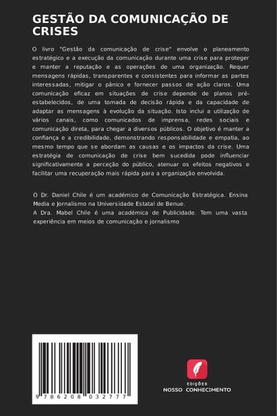 O livro "Gestão da comunicação de crise" envolve o planeamento estratégico e a execução da comunicação durante uma crise para proteger e manter a reputação e as operações de uma organização. Requer mensagens rápidas, transparentes e consistentes para informar as partes interessadas, mitigar o pânico e fornecer passos de ação claros. Uma comunicação eficaz em situações de crise depende de planos pré-estabelecidos, de uma tomada de decisão rápida e da capacidade de adaptar as mensagens à evolução da situação. Isto inclui a utilização de vários canais, como comunicados de imprensa, redes sociais e comunicação direta, para chegar a diversos públicos. O objetivo é manter a confiança e a credibilidade, demonstrando responsabilidade e empatia, ao mesmo tempo que se abordam as causas e os impactos da crise. Uma estratégia de comunicação de crise bem sucedida pode influenciar significativamente a perceção do público, atenuar os efeitos negativos e facilitar uma recuperação mais rápida para a organização envolvida.