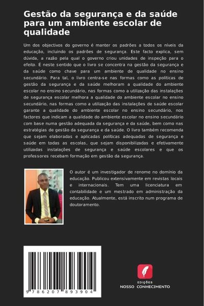 Um dos objectivos do governo é manter os padrões a todos os níveis da educação, incluindo os padrões de segurança. Este facto explica, sem dúvida, a razão pela qual o governo criou unidades de inspeção para o efeito. É neste sentido que o livro se concentra na gestão da segurança e da saúde como chave para um ambiente de qualidade no ensino secundário. Para tal, o livro centra-se nas formas como as políticas de gestão da segurança e da saúde melhoram a qualidade do ambiente escolar no ensino secundário, nas formas como a utilização das instalações de segurança escolar melhora a qualidade do ambiente escolar no ensino secundário, nas formas como a utilização das instalações de saúde escolar garante a qualidade do ambiente escolar no ensino secundário, nos factores que indicam a qualidade do ambiente escolar no ensino secundário com base numa gestão adequada da segurança e da saúde, bem como nas estratégias de gestão da segurança e da saúde. O livro também recomenda que sejam elaboradas e aplicadas políticas adequadas de segurança e saúde em todas as escolas, que sejam disponibilizadas e efetivamente utilizadas instalações de segurança e saúde escolares e que os professores recebam formação em gestão da segurança.