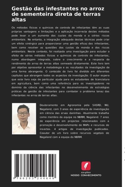 Os métodos físicos e químicos de controlo de infestantes têm as suas próprias vantagens e limitações e a aplicação incorrecta destes métodos pode levar a um aumento dos custos da monda e a sérios riscos ambientais. No entanto, a integração adequada destas técnicas pode criar um efeito sinérgico para proporcionar uma gestão eficaz das infestantes, bem como resolver as questões dos custos da monda e dos riscos ambientais. Neste contexto, foi realizada uma investigação para estudar o efeito de vários métodos físicos e químicos de controlo de infestantes, numa abordagem integrada, sobre o crescimento e a resposta do rendimento do arroz de terras altas semeado diretamente. Este livro tem por objetivo apresentar a metodologia e os resultados da investigação de uma forma abrangente. O conteúdo do livro foi dividido em diferentes capítulos que abrangem todos os aspectos da investigação. O autor espera que este livro seja de particular ajuda para os estudantes de licenciatura em agricultura, bem como uma referência para os investigadores no domínio da ciência das infestantes no desenvolvimento de estratégias práticas de gestão de infestantes para combater o problema tenaz das infestantes no arroz de terras altas.