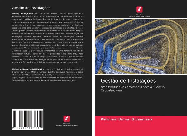 Facility Management (ou FM) é um assunto multidisciplinar que está ganhando rapidamente força no mercado global. O livro tratou de três temas relacionados. 1Bridging the knowledge gap by Quantity Surveyors examina as crescentes mudanças no clima econômico global, a resposta da indústria da construção civil a essas mudanças e como as competências profissionais estão evoluindo para atender às crescentes demandas dos clientes. O foco é como a profissão de levantamento de quantidade está alavancando a FM para ampliar seu escopo de serviços para outras indústrias. A prática de 2FM em instituições públicas terciárias examina como as instituições públicas terciárias da Nigéria praticam a FM. Encontra uma ligação entre a qualidade das instalações e a qualidade dos produtos das instituições, e conclui que o alcance de metas e objetivos educacionais está baseado no uso de práticas proativas de FM nas instalações, o que infelizmente não é o caso na Nigéria. 3Tendência satuais & perspectivas emergentes é uma tentativa ousada de sistematizar estudos centrados na FM publicados entre 2006-2020. Após análises aprofundadas de 88 artigos publicados, conclui-se que os estudos sobre a FM ainda estão em estágio inicial, pois os estudiosos ainda não a abraçaram. Eles podem contribuir genuinamente para o seu crescimento.