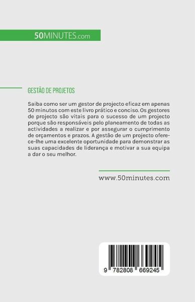 Saiba como ser um gestor de projecto eficaz em apenas 50 minutos com este livro prático e conciso. Os gestores de projecto são vitais para o sucesso de um projecto porque são responsáveis pelo planeamento de todas as actividades a realizar e por assegurar o cumprimento de orçamentos e prazos. A gestão de um projecto oferece-lhe uma excelente oportunidade para demonstrar as suas capacidades de liderança e motivar a sua equipa a dar o seu melhor. Neste livro, aprenderá como a gestão de projectos pode desempenhar um papel importante no seu desenvolvimento profissional. Inclui também dicas úteis sobre como preparar e planear o seu projecto e conselhos sobre como supervisionar tanto as pessoas como os recursos, dando-lhe tudo o que precisa para conduzir a sua equipa ao sucesso!