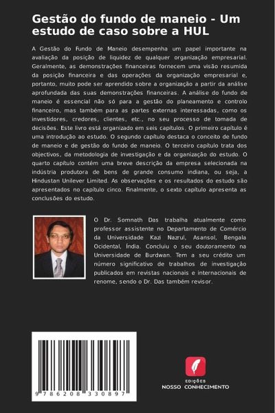A Gestão do Fundo de Maneio desempenha um papel importante na avaliação da posição de liquidez de qualquer organização empresarial. Geralmente, as demonstrações financeiras fornecem uma visão resumida da posição financeira e das operações da organização empresarial e, portanto, muito pode ser aprendido sobre a organização a partir da análise aprofundada das suas demonstrações financeiras. A análise do fundo de maneio é essencial não só para a gestão do planeamento e controlo financeiro, mas também para as partes externas interessadas, como os investidores, credores, clientes, etc., no seu processo de tomada de decisões. Este livro está organizado em seis capítulos. O primeiro capítulo é uma introdução ao estudo. O segundo capítulo destaca o conceito de fundo de maneio e de gestão do fundo de maneio. O terceiro capítulo trata dos objectivos, da metodologia de investigação e da organização do estudo. O quarto capítulo contém uma breve descrição da empresa selecionada na indústria produtora de bens de grande consumo indiana, ou seja, a Hindustan Unilever Limited. As observações e os resultados do estudo são apresentados no capítulo cinco. Finalmente, o sexto capítulo apresenta as conclusões do estudo.