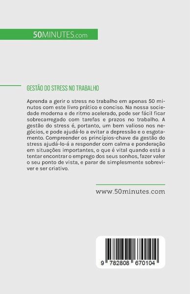 Aprenda a gerir o stress no trabalho em apenas 50 minutos com este livro prático e conciso. Na nossa sociedade moderna e de ritmo acelerado, pode ser fácil ficar sobrecarregado com tarefas e prazos no trabalho. A gestão do stress é, portanto, um bem valioso nos negócios, e pode ajudá-lo a evitar a depressão e o esgotamento. Compreender os princípios-chave da gestão do stress ajudá-lo-á a responder com calma e ponderação em situações importantes, o que é vital quando está a tentar encontrar o emprego dos seus sonhos, fazer valer o seu ponto de vista, e parar de simplesmente sobreviver e ser criativo. Neste livro, aprenderá como a redução do stress o pode ajudar em entrevistas de trabalho, em discursos em público, apresentações e no local de trabalho em geral. Inclui também dicas úteis para reduzir o stress e conselhos sobre como deixar de se preocupar tanto, o que significa que estará fresco, calmo e em controlo num instante!