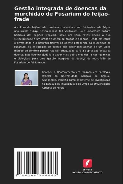 A cultura do feijão-frade, também conhecida como feijão-de-corda (Vigna unguiculata subsp. sesquipedalis (L.) Verdcourt), uma importante cultura hortícola das regiões tropicais, sofre um sério revés devido à sua suscetibilidade a um grande número de pragas e doenças. Tendo em conta a diversidade e a natureza flexível do agente patogénico da murchidão de Fusarium, as estratégias de gestão que dependem apenas de um único método de controlo podem não ser adequadas para a supressão eficaz da doença. Este livro irá ajudá-lo a saber mais sobre medidas físicas, químicas e biológicas para uma gestão integrada da doença da murchidão de Fusarium do feijão-frade.