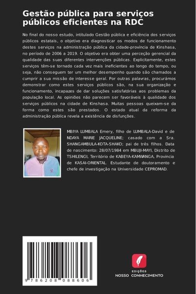 No final do nosso estudo, intitulado Gestão pública e eficiência dos serviços públicos estatais, o objetivo era diagnosticar os modos de funcionamento destes serviços na administração pública da cidade-província de Kinshasa, no período de 2006 a 2019. O objetivo era obter uma perceção gerencial da qualidade das suas diferentes intervenções públicas. Explicitamente, estes serviços têm-se tornado cada vez mais ineficientes ao longo do tempo, ou seja, não conseguem ter um melhor desempenho quando são chamados a cumprir a sua missão de interesse geral. Por outras palavras, procurámos demonstrar como estes serviços públicos são, na sua organização e funcionamento, incapazes de dar soluções satisfatórias aos problemas da população local. As opiniões não parecem ser favoráveis à qualidade dos serviços públicos na cidade de Kinshasa. Muitas pessoas queixam-se da forma como estes são prestados. O estado atual da reforma da administração pública revela a existência de disfunções.