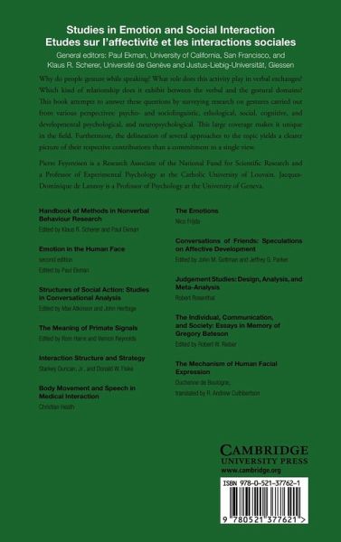 Why do people gesture while speaking? What role does this activity play in verbal exchanges? Which kind of relationship does it exhibit between the verbal and the gestural domains? This 1991 book attempts to answer these questions by surveying research on gestures carried out from various perspectives: psycho- and sociolinguistic, ethological, social, cognitive, and developmental psychological, and neuropsychological. This large coverage makes it unique in the field. Furthermore, the delineation of several approaches to the topic yields a clearer picture of their respective contributions than a commitment to a single view.