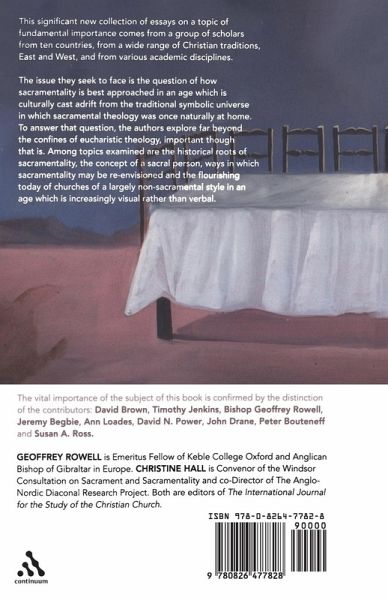 This important new collection of essays on a topic of vital importance is by a group of scholars from ten countries, from a wide range of Christian traditions, East and West, and from various academic disciplines. What has happened to sacramentality in an age which is on the one hand visual and on the other culturally cast adrift from the traditional symbolic universe in which sacramental theology was naturally at home? This book is not just confined to a discussion of Eucharistic theology. It examines both the historical roots of sacramentality, the concept of a sacral person, ways in which sacramentality may be re-envisioned and the flourishing roday of churches of a largely non-sacramental style in an age which is increasingly visual rather than verbal. The vital importance of the subject of this book is confirmed by the distinction of the contributors-David Brown (Professor of Theology at Durham University), Timothy Jenkins (Cambridge), Bishop Geoffrey Rowell (Oxford), Jeremy Begbie (St. Andrews and Cambridge), Ann Loades (Durham), David N. Power (Catholic University of America), Sven-Erik Brodd (Uppsala), Peter Bouteneff (St. Vladimir's Seminary, New York) and Susan A. Ross (Loyola University, Chicago).