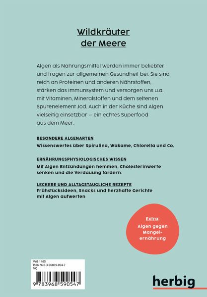 Algen als Nahrungsmittel werden immer beliebter. Sie sind reich an Proteinen und anderen Nährstoffen, stärken das Immunsystem und versorgen uns u.a. mit Vitaminen und dem seltenen Spurenelement Jod. Spirulina, Wakame, Chlorella, Ulva oder Dulse: Welche Algenarten gibt es und welche Wirkung haben sie auf die Gesundheit? Welche Alge eignet sich besonders gut zum Entgiften? Welche unterstützt beim Abnehmen? Die Algenexperten Kirstin Knufmann und Jörg Ullmann verraten leckere Powerfood-Rezepte und haben noch viele weitere Tipps für Anwendungen mit dem Meeresgemüse.