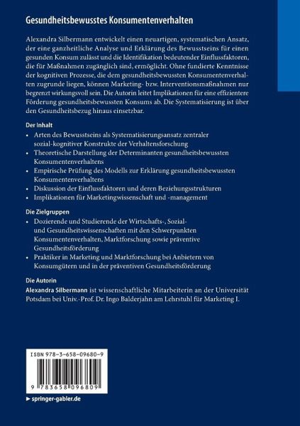 Alexandra Silbermann entwickelt einen neuartigen, systematischen Ansatz, der eine ganzheitliche Analyse und Erklärung des Bewusstseins für einen gesunden Konsum zulässt und die Identifikation bedeutender Einflussfaktoren, die für Maßnahmen zugänglich sind, ermöglicht. Ohne fundierte Kenntnisse der kognitiven Prozesse, die dem gesundheitsbewussten Konsumentenverhalten zugrunde liegen, können Marketing- bzw. Interventionsmaßnahmen nur begrenzt wirkungsvoll sein. Die Autorin leitet Implikationen für eine effizientere Förderung gesundheitsbewussten Konsums ab. Die Systematisierung ist über den Gesundheitsbezug hinaus einsetzbar.