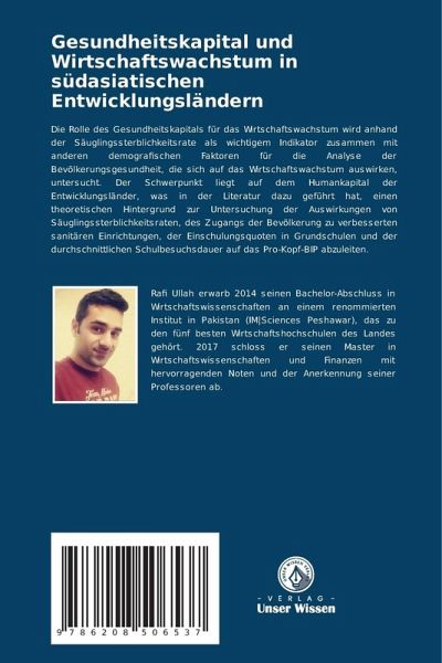 Die Rolle des Gesundheitskapitals für das Wirtschaftswachstum wird anhand der Säuglingssterblichkeitsrate als wichtigem Indikator zusammen mit anderen demografischen Faktoren für die Analyse der Bevölkerungsgesundheit, die sich auf das Wirtschaftswachstum auswirken, untersucht. Der Schwerpunkt liegt auf dem Humankapital der Entwicklungsländer, was in der Literatur dazu geführt hat, einen theoretischen Hintergrund zur Untersuchung der Auswirkungen von Säuglingssterblichkeitsraten, des Zugangs der Bevölkerung zu verbesserten sanitären Einrichtungen, der Einschulungsquoten in Grundschulen und der durchschnittlichen Schulbesuchsdauer auf das Pro-Kopf-BIP abzuleiten.