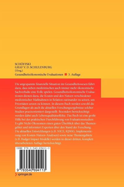 Die angespannte finanzielle Situation im Gesundheitswesen führt dazu, dass neben medizinischen auch immer mehr ökonomische Sachverhalte eine Rolle spielen. Gesundheitsökonomische Evaluationen dienen dazu, die Kosten und den Nutzen verschiedener medizinischer Maßnahmen in Relation zueinander zu setzen, um Prioritäten setzen zu können. In diesem Buch werden sowohl die Grundlagen als auch die aktuellen Forschungsergebnisse solcher Studien praxisorientiert dargestellt. Besonders berücksichtigt werden dabei auch Lebensqualitätseffekte. Das Buch ist eine große Hilfe bei der praktischen Durchführung von Evaluationsstudien: Es gibt Nicht-Ökonomen einen guten Überblick über das Themengebiet und informiert Experten über den Stand der Forschung. Die aktuellen Entwicklungen (z.B. NICE, IQWiG, Implementierung von Kosten-Nutzen-Analysen) sowie neue Themengebiete (z.B. Budget Impact Modelle) werden in dieser dritten, komplett überarbeiteten Auflage berücksichtigt.