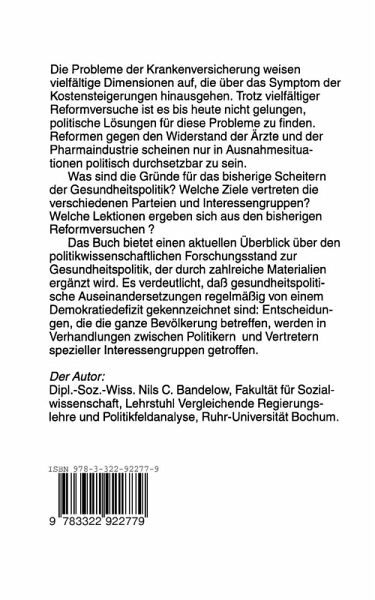 Die Arbeit an dem vorliegenden Buch wurde von verschiedenen Per sonen tatkräftig unterstützt. Besonderer Dank gilt Heiko Hoffmann für seine Mithilfe bei der Anfertigung der Übersichten. Weitere techni sche Hilfe verdanke ich Dörte Bandelow, Tim Bandelow, Holger Diedrich, Angelika 1. Hüpen und Thomas Kößmeier. Susanne Blancke, Josef Schmid, Klaus Schubert, Andrea Sinzel und Philip Manow haben durch kritische Kommentare zu früheren Versionen dazu beigetragen, die Anzahl der verbliebenen Mängel zu reduzieren. Ulrich Widmaier lieferte wertvolle Hinweise zur Interpre tation der verschiedenen gesundheitspolitischen Reformprozesse. Auch den Vertretern von Parteien, Verbänden und anderen Institutionen, die sich die Zeit für Interviews genommen haben und vielfältiges Material zur Verfügung stellten, gilt mein herzlicher Dank. Bochum, im März 1997 Nils C. Bandelow 5 Inhalt Vorwort . . . . . . . . . . . . . . . . . . . . . . . . . . . . . . . . . . . . . . . . . . . . . . . . . . . . . . . . . . . . . . . . . . . . . . . . . . . . . . . . . . . . . . . . . 5 Übersichten. . . . . . . . . . . . . . . . . . . . . . . . . . . . . . . . . . . . . . . . . . . . . . . . . . . . . . . . . . . . . . . . . . . . . . . . . . . . . . . . . . . . 11 Karikaturen. . . . . . . . . . . . . . . . . . . . . . . . . . . . . . . . . . . . . . . . . . . . . . . . . . . . . . . . . . . . . . . . . . . . . . . . . . . . . . . . . . . . . 14 Abkürzungen. . . . . . . . . . . . . . . . . . . . . . . . . . . . . . . . . . . . . . . . . . . . . . . . . . . . . . . . . . . . . . . . . . . . . . . . . . . . . . . . . . 15 1 Einleitung: Ziele der Gesundheitspolitik . . . . . . . . . . . . . . . . . . . . . 17 2 Problemdimensionen: Das deutsche Gesundheitswesen zwischen solidarischer Grundsicherung, Kostensteigerungen und Qualitätsmängeln . . . . . . . . . . . . . . . . . . . . . . . . . . . . . . . . . . . . . . . . . . . . . . . . . . . . . . . . . . . 19 2. 1 Die GKV: Ein problematisches lahrhundertmodell? . . . . . . . 20 2. 2 Gewinn-statt Nutzenorientierung in der Krankenversicherung? . . . . . . . . . . . . . . . . . . . . . . . . . . . . . . . . . . . . . . . . . . . . . . . . . . . . . 34 2. 3 Der tägliche Skandal: Ethische Fragen und Schutz vor Risiken bei medizinischer Forschung und Anwendung. . . 37 2. 4 Kostensteigerungen belasten Wirtschaft und Versicherte. . . . . . . . . . . . . . . . . . . . . . . . . . . . . . . . . . . . . . . . . . . . . . . . . . . . . . . . . . . . . . . . 41 2. 4. 1 Krankenhäuser als Kostentreiber?. . . . . . . . . . . . . . . . . . . . . . . . . . . . . . . . . . . 45 2. 4. 2 Ärzteschwemme und Kostensteigerungen im ambulanten Sektor . . . . . . . . . . . . . . . . . . . . . . . . . . . . . . . . . . . . . . . . . . . . . . . . . . . . . . 52 2. 4. 3 Hohe Preise für unwirksame Medikamente?. . . . . . . . . . . . . . . . . . . 60 2. 4. 4 Zwischenfazit: Vielfältige Folgeprobleme der Kostensteigerungen. . . . . . . . . . . . . . . . . . .. . . . . . . . . . . . . . . . . . . . . . . . . . . . . . . . . . . . . . . 65 2. 5 Zusammenfassung: Trotz guten Notfallschutzes viele ungelöste Probleme . . . . . . . . . . . . . . . . . . . . . . . . . . . . . . . . . . . . . . . . . . . . . . . . . . . . . . . . . . 66 7 3 Analysen der Problemursachen: Politischer Wille mächtiger Akteure oder strukturelle Steuerungshindernisse? . . . . . . . . . . . . . . . . . . . . . . . . . . . . . . . . . . . . . . . . . . . . . . . . .