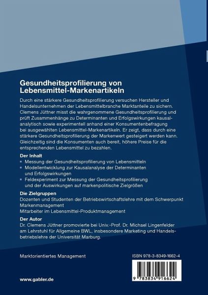 Durch eine stärkere Gesundheitsprofilierung versuchen Hersteller und Handelsunternehmen der Lebensmittelbranche Marktanteile zu sichern. Clemens Jüttner misst die wahrgenommene Gesundheitsprofilierung und prüft Zusammenhänge zu Determinanten und Erfolgswirkungen kausalanalytisch sowie experimentell anhand einer Konsumentenbefragung bei ausgewählten Lebensmittel-Markenartikeln. Er zeigt, dass durch eine stärkere Gesundheitsprofilierung der Markenwert gesteigert werden kann. Gleichzeitig sind die Konsumenten auch bereit, höhere Preise für die entsprechenden Lebensmittel zu bezahlen.