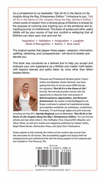 The "Get All A's in the Game of Life: Insights Along the Way, the Mother's Edition" is filled with useful quotes, stories and tidbits that will be your source of fuel and comfort-a wellspring that all Mothers can draw upon over and over for inspiration, validation, invigoration, laughter, nods of recognition, advice, and, more!