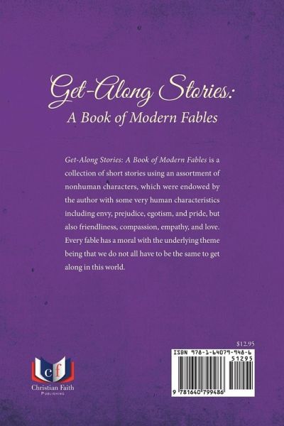 Get-Along Stories: A Book of Modern Fables is a collection of short stories using an assortment of nonhuman characters, which were endowed by the author with some very human characteristics including envy, prejudice, egotism, and pride, but also friendliness, compassion, empathy, and love. Every fable has a moral with the underlying theme being that we do not all have to be the same to get along in this world.