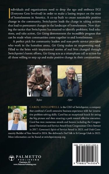 The real solutions that lead to a marked change in the landscape of homelessness and how communities can follow Switchpoint's tactics and methods for a sustainable impact. Ending homelessness requires individuals and organizations to drop the ego and embrace the philosophy of EGI (Everyone Gets Involved). As a co-op built to make sustainable positive change in the community, Switchpoint has enacted a path that others can follow in identifying problems, finding solutions, and taking actions that lead to permanent changes. Switchpoint's community center provides the homeless community with services that go far beyond food and shelter, creating steppingstones to independence for persons living in homelessness and poverty. Now offering an outline of the Switchpoint process, Get Going shows the incredible progress made when communities come together. Get Going offers community leaders and non-profit service providers in the homeless arena an empowering set of tactics to help end homelessness. Jam-packed with stories of the real lives changed in communities willing to come together, Get Going makes an inspiring read that also acts as a triumphant call to action for all those willing to step up and be the change they are looking for in their communities.