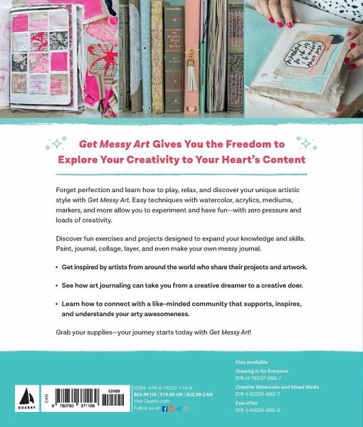 Getting messy is the best part of creating! Get Messy Art gives you the freedom, inspiration, and ideas to experiment and play with art techniques and projects to create perfectly imperfect art. We’re always told that play and experimentation is the foundation of growing as an artist. But where do you start? Where to find new techniques to try? How do you bring them all together? Get Messy Art has all the guidance, instruction, and inspiration you need. Based on the popular online class and community website Get Messy Art, this book brings together tons of creative art techniques and projects, including painting with watercolor and acrylic, mark-making, drawing with markers and pen and ink, sketching faces, and much more. The fun doesn’t stop there. You’ll also learn how to make your own art journals and trendy junk journals—easy handmade books to work in that are personalized and one of a kind. In Get Messy Art you’ll discover: * A welcoming environment that encourages play and experimentation, to help you become the artist you always wanted to be. * How to use no-rules, no-stress art techniques as a creative outlet to express feelings. * Actionable inspiration that will keep you going, even when motivation is scarce. * Fresh techniques that will show you innovative ways to use low-cost supplies such as paint and mediums, stencils, pens, and paper. * Easy background techniques that will get you started and banish fear of the blank page. * The satisfaction of making your own unique journals using simple methods. Ultimately, art is all about creating for the sake of creating. It’s powerful, it’s cathartic, it’s messy—and it’s all yours. It’s time to get messy!