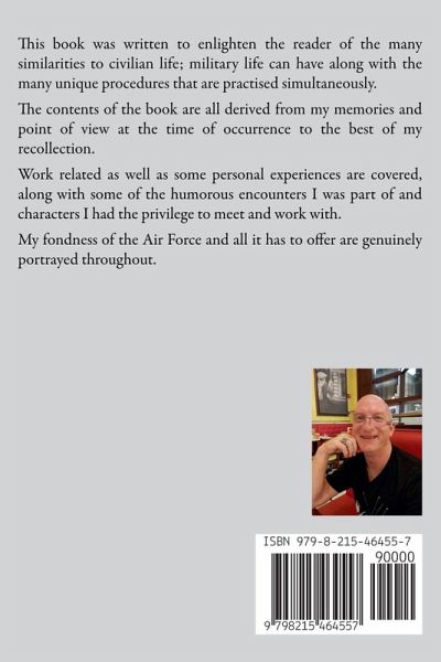 This book was written to enlighten the reader of the many similarities to civilian life; military life can have along with the many unique procedures that are practised simultaneously. The contents of the book are all derived from my memories and point of view at the time of occurrence to the best of my recollection. Work related as well as some personal experiences are covered, along with some of the humorous encounters I was part of and characters I had the privilege to meet and work with. My fondness of the Air Force and all it has to offer are genuinely portrayed throughout.