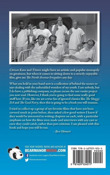 Citizen Kane and Titanic might have an artistic and popular monopoly on greatness, but when it comes to sitting down to a strictly enjoyable film, give me The North Avenue Irregulars any day. What you hold in your hand now is a collection of behind the scenes essays dealing with the unheralded wonders of my youth. I am nobody, but I do have a publishing company, so please excuse the one vanity project you now read. However, I think you’re going to find some really good stuff here. If you, like me are a true fan of ignored classics like The Shaggy DA and The Good Fairy, then this is going to be a book you will treasure. I tried to collect up a group of my favorite films that have not been covered much in print before, then asked a few good writers I knew if they would be interested in writing chapters on each, with a particular emphasis on how the films were made and interviews with any cast or crew they could catch, rather than just criticism. I am pleased with this book and hope you will be too. - Ben Ohmart