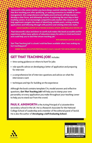 Many teachers strive to work in a particular type of school, a precise location or a specific post. Once such parameters have been set, obtaining your dream job can be extremely competitive. This guide to finding the right school, perfecting your application and polishing your interview technique will empower teachers at all stages of their career to gain an advantage in a competitive environment. Get That Teaching Job! includes: . Time-saving guidance on where to hunt for jobs . Role-specific advice on developing a letter of application and preparing for interview . A comprehensive list of interview questions and advice on what the interviewers want . Techniques and tips for building on the experience Although the book contains template CVs, model answers and reflective questions, this book will help you to stamp your own personality on every application you make throughout your teaching career to help you to stand out from the crowd.