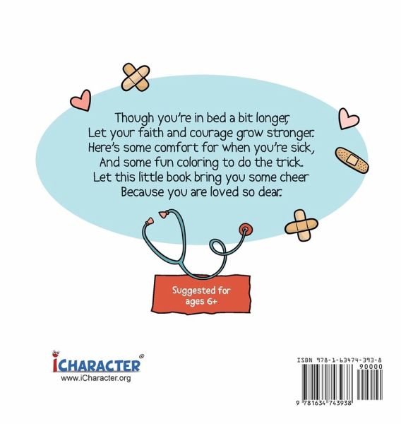 Though you're in bed a bit longer, Let your faith and courage grow stronger. Here's some comfort for when you're sick, And some fun coloring to do the trick. Let this little book bring you some cheer Because you are loved so dear. A coloring book for times when your children are sick, with rhymes that encourage and build faith. With extra blank pages in between, for a better coloring experience. Hard cover gift book edition. Suggested for ages 6 and up. Get more books & free downloads from our website www.icharacter.org