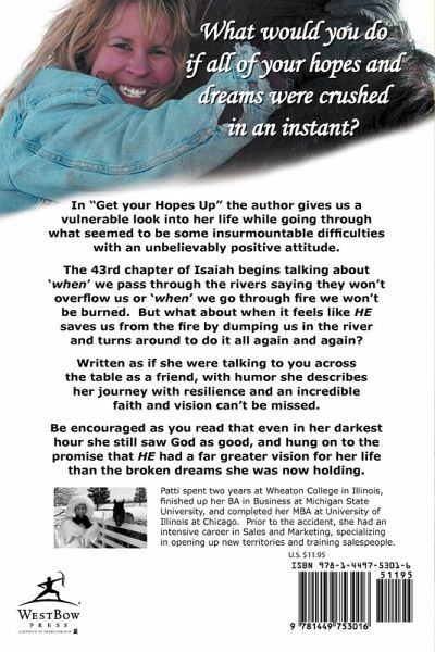 What would you do if all of your hopes and dreams were crushed in an instant? In Get Your Hopes Up, the author gives us a vulnerable look into her life while going through what seemed to be some insurmountable difficulties with an unbelievable positive attitude. In the forty-third chapter of Isaiah, he begins talking about when we pass through the rivers saying they won't overflow us or when we go through fire we won't be burnt. But what about when it feels like he saves us from the fire by dumping us in the river and turns around to do it all again and again? Written as if she were talking to you across the table as a friend, with humor she describes her journey with resilience and an incredible faith and vision. Be encouraged as you read that even in her darkest hour, she still saw God as good and hung on to the promise that he had a far greater vision for her life than the broken dreams she was now holding.