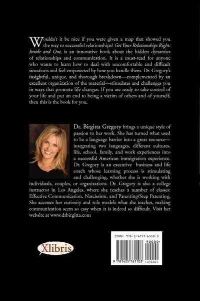 Wouldn't it be nice if you were given a map that showed you the way to successful relationships? Get Your Relationships Right: Inside and Out, is an innovative book about the hidden dynamics of relationships and communication. It is a must-read for anyone who wants to learn how to deal with uncomfortable and difficult situations and feel empowered by how you handle them. Dr. Gregory's insightful, unique, and thorough breakdown-complemented by an excellent organization of the material-stimulates and challenges you in ways that promote life changes. If you are ready to take control of your life and put an end to being a victim of others and of yourself, then this is the book for you.