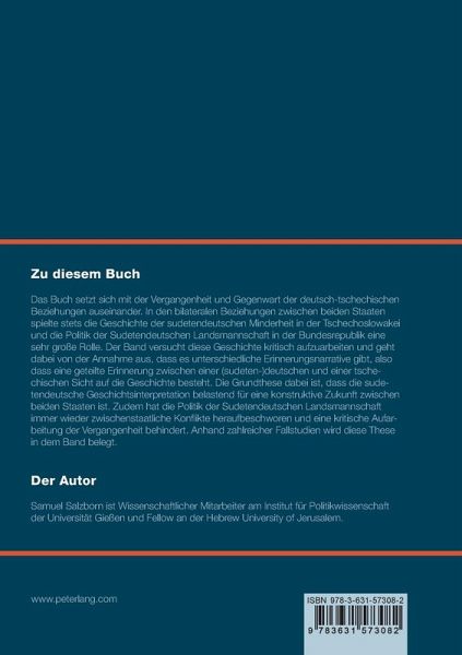 Das Buch setzt sich mit der Vergangenheit und Gegenwart der deutsch-tschechischen Beziehungen auseinander. In den bilateralen Beziehungen zwischen beiden Staaten spielte stets die Geschichte der sudetendeutschen Minderheit in der Tschechoslowakei und die Politik der Sudetendeutschen Landsmannschaft in der Bundesrepublik eine sehr große Rolle. Der Band versucht diese Geschichte kritisch aufzuarbeiten und geht dabei von der Annahme aus, dass es unterschiedliche Erinnerungsnarrative gibt, also dass eine geteilte Erinnerung zwischen einer (sudeten-)deutschen und einer tschechischen Sicht auf die Geschichte besteht. Die Grundthese dabei ist, dass die sudetendeutsche Geschichtsinterpretation belastend für eine konstruktive Zukunft zwischen beiden Staaten ist. Zudem hat die Politik der Sudetendeutschen Landsmannschaft immer wieder zwischenstaatliche Konflikte heraufbeschworen und eine kritische Aufarbeitung der Vergangenheit behindert. Anhand zahlreicher Fallstudien wird diese These in dem Band belegt.