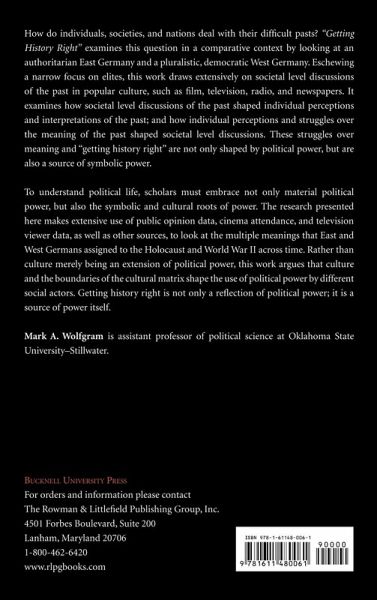 How do individuals, societies, and nations deal with their difficult pasts? "Getting History Right" examines this question in a comparative context by looking at an authoritarian East Germany and a pluralistic, democratic West Germany. Eschewing a narrow focus on elites, this work draws extensively on societal level discussions of the past in popular culture, such as film, television, radio, and newspapers. It examines how societal level discussions of the past shaped individual perceptions and interpretations of the past; and how individual perceptions and struggles over the meaning of the past shaped societal level discussions. These struggles over meaning and "getting history right" are not only shaped by political power, but are also a source of symbolic power. To understand political life, scholars must embrace not only material political power, but also the symbolic and cultural roots of power. The research presented here makes extensive use of public opinion data, cinema attendance, and television viewer data, as well as other sources, to look at the multiple meanings that East and West Germans assigned to the Holocaust and World War II across time. Rather than culture merely being an extension of political power, this work argues that culture and the boundaries of the cultural matrix shape the use of political power by different social actors. Getting history right is not only a reflection of political power; it is a source of power itself.