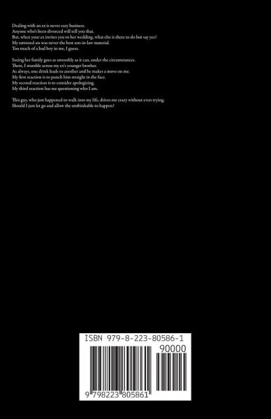 Dealing with an ex is never easy business. Anyone who's been divorced will tell you that. But, when your ex invites you to her wedding, what else is there to do but say yes? My tattooed ass was never the best son-in-law material. Too much of a bad boy in me, I guess. Seeing her family goes as smoothly as it can, under the circumstances. There, I stumble across my ex's younger brother. As always, one drink leads to another and he makes a move on me. My first reaction is to punch him straight in the face. My second reaction is to consider apologizing. My third reaction has me questioning who I am. This guy, who just happened to walk into my life, drives me crazy without even trying. Should I just let go and allow the unthinkable to happen?