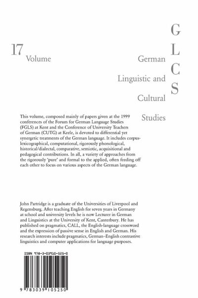 This volume, composed mainly of papers given at the 1999 conferences of the Forum for German Language Studies (FGLS) at Kent and the Conference of University Teachers of German (CUTG) at Keele, is devoted to differential yet synergetic treatments of the German language. It includes corpus-lexicographical, computational, rigorously phonological, historical/dialectal, comparative, semiotic, acquisitional and pedagogical contributions. In all, a variety of approaches from the rigorously 'pure' and formal to the applied, often feeding off each other to focus on various aspects of the German language.