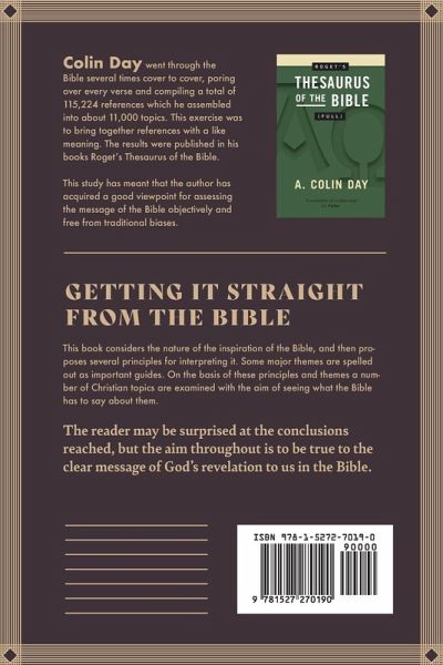 The author has spent many years going through the Bible verse by verse, compiling 115,224 references sorted into 11,000 categories. These are printed in his Roget's Thesaurus of the Bible. The present book is based on his findings during this study. The inspiration of the Bible is considered, and ways to interpret it are evaluated. The following major themes are examined as extra principles governing interpretation: the Christ, the people of God, the promised land and the law. This method of interpretation is then applied to a consideration of prosperity teaching, tithing, the Sabbath, science, the last things, miracles and the church.