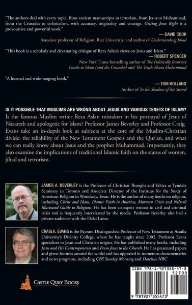 IS IT POSSIBLE THAT MUSLIMS ARE WRONG ABOUT JESUS AND VARIOUS TENETS OF ISLAM? Is the famous Muslim writer Reza Aslan mistaken in his portrayal of Jesus of Nazareth and apologetic for Islam? Professor James Beverley and Professor Craig Evans take an in-depth look at subjects at the core of the Muslim-Christian divide: the reliability of the New Testament Gospels and the Qur'an, and what we can really know about Jesus and the prophet Muhammad. Importantly, they also examine the implications of traditional Islamic faith on the status of women, jihad and terrorism. "The authors deal with every topic, from ancient manuscripts to terrorism, from Jesus to Muhammad, from the Crusades to colonialism, with accuracy, originality and courage. Getting Jesus Right is a provocative and powerful work." - David Cook Associate professor of Religion, Rice University, and author of Understanding Jihad "This book is a scholarly and devastating critique of Reza Aslan's views on Jesus and Islam." - Robert Spencer New York Times bestselling author of The Politically Incorrect Guide to Islam (and the Crusades) and The Truth About Muhammad "A learned and wide-ranging book" - Tom Holland Author of In the Shadow of the Sword