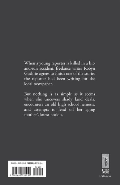 When a young reporter is killed in a hit and run accident, freelance writer Robyn Guthrie agrees to finish one of the stories the reporter had been writing for the local newspaper. But nothing is as simple as it seems when she finds out about shady land deals, an old high school nemesis, and Robyn's aging mother.