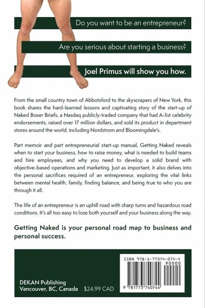 Do you want to be an entrepreneur? Are you serious about starting a business? Joel Primus will show you how. From the small country town of Abbotsford to the skyscrapers of New York, this book shares the hard-learned lessons and captivating story of the start-up of Naked Boxer Briefs, a Nasdaq publicly-traded company that had A-list celebrity endorsements, raised over 17 million dollars, and sold its product in department stores around the world, including Nordstrom and Bloomingdale's. Part memoir and part entrepreneurial start-up manual, Getting Naked reveals when to start your business, how…mehr