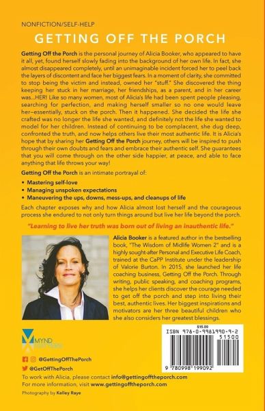 Getting Off the Porch is the personal journey of Alicia Booker, who appeared to have it all, yet, found herself slowly fading into the background of her own life. In fact, she almost disappeared completely, until an unimaginable incident forced her to peel back the layers of discontent and face her biggest fears. In a moment of clarity, she committed to stop being the victim and instead, owned her "stuff." She discovered the thing keeping her stuck in her marriage, her friendships, as a parent, and in her career was...HER! Like so many women, most of Alicia's life had been spent people pleasing, searching for perfection, and making herself smaller so no one would leave her-essentially, stuck on the porch. Then it happened. She decided the life she crafted was no longer the life she wanted, and definitely not the life she wanted to model for her children. Instead of continuing to be complacent, she dug deep, confronted the truth, and now helps others live their most authentic life. It is Alicia's hope that by sharing her Getting Off the Porch journey, others will be inspired to push through their own doubts and fears and embrace their authentic self. She guarantees that you will come through on the other side happier, at peace, and able to face anything that life throws your way! Getting Off the Porch is an intimate portrayal of: ¿ Mastering self-love¿ Managing unspoken expectations¿ Maneuvering the ups, downs, mess-ups, and cleanups of life Each chapter exposes why and how Alicia almost lost herself and the courageous process she endured to not only turn things around but live her life beyond the porch.