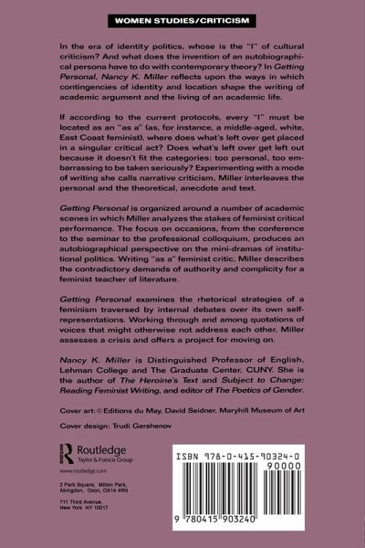 Miller's study examines the place of the autobio- graphical persona in contemporary theory and reflects on the ways in which identity and location shape academic argument and academic life.
