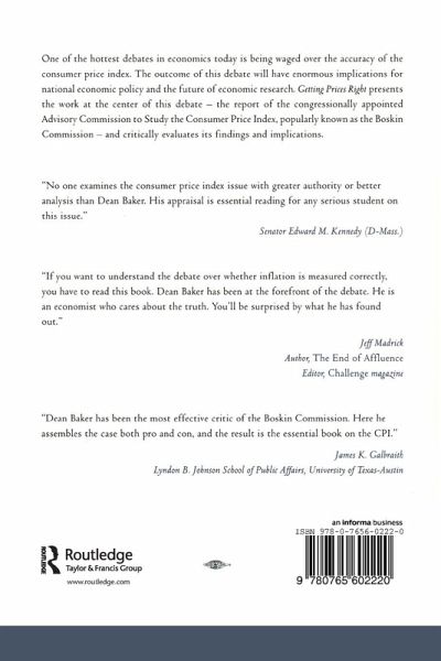 Compiled by the Bureau of Labor Statistics, the CPI is used to index Social Security payments and many other federal programs, as well as to adjust tax brackets. Today, the accuracy of the CPI is being hotly debated, particularly in light of the Boskin Commission report that concluded in December 1996 that the CPI overstates inflation by 1.1%. If accepted and applied in the formulation of economic policy, the report would have major implications for balancing the federal budget. It would have a direct impact on the lives of Americans who are beneficiaries of government programs as well as on everyone who pays taxes. In this book, Dean Baker introduces and explains the significance of the debate, presents the full text of the Boskin Commission report and finally discusses in a far-reaching and insightful analysis both the Commission's research methodology and its conclusions.