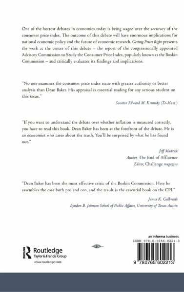 Compiled by the Bureau of Labor Statistics, the CPI is used to index Social Security payments and many other federal programs, as well as to adjust tax brackets. Today, the accuracy of the CPI is being hotly debated, particularly in light of the Boskin Commission report that concluded in December 1996 that the CPI overstates inflation by 1.1%. If accepted and applied in the formulation of economic policy, the report would have major implications for balancing the federal budget. It would have a direct impact on the lives of Americans who are beneficiaries of government programs as well as on everyone who pays taxes. In this book, Dean Baker introduces and explains the significance of the debate, presents the full text of the Boskin Commission report and finally discusses in a far-reaching and insightful analysis both the Commission's research methodology and its conclusions.