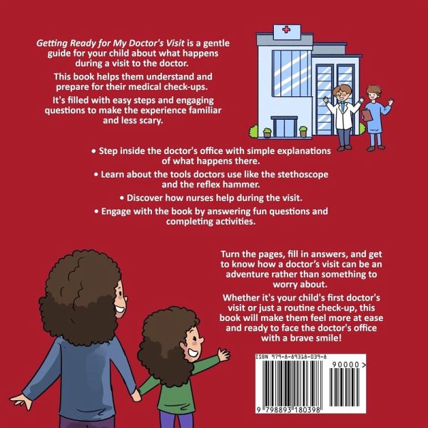 Is your child getting ready for their well-child doctor's visit? Are they feeling a little nervous? Getting Ready for My Doctor's Visit is a gentle guide for kids about what happens during a visit to the doctor. This book helps children understand and prepare for their medical check-ups. It's filled with easy steps and engaging questions to make the experience familiar and less scary.Step inside the doctor's office with simple explanations of what happens there. Learn about the tools doctors use like the stethoscope and the reflex hammer. Discover how nurses help during the visit, from checking your height and weight to making sure you're feeling okay. Engage with the book by answering fun questions and completing activities. It's designed for young readers and their parents to read together, turning the often daunting experience of a doctor's visit into an engaging and educational journey. The mission of this book is to provide your child with the following: Learn what happens at their doctor's visit via easy-to-understand language Understand why certain exams are performed by their doctor Empower your little one with their newfound knowledge Encourage your child to participate in their own healthcare Reduce their anxiety and fear about their doctor's visit Embrace their doctor's visit with more comfort, positivity, and confidence Get your copy today!!