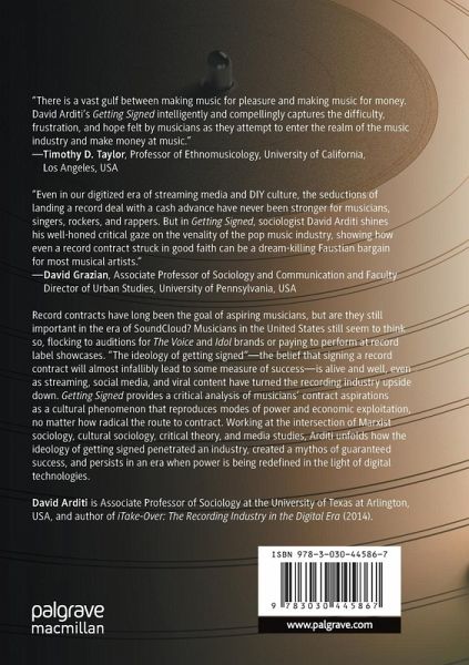 Though streaming, social media, and viral content have turned the recording industry upside down in one sense, the record contract and its mythos still persist. Getting Signed provides a critical analysis of musicians' contract aspirations as a cultural phenomenon that reproduces modes of power and economic exploitation, no matter how radical the route to contract. Working at the intersection of Marxist sociology, cultural sociology, critical theory, and media studies, Arditi unfolds how the ideology of getting signed penetrated an industry, created a mythos of guaranteed success, and persists in an era when power is being redefined in the light of digital technologies.