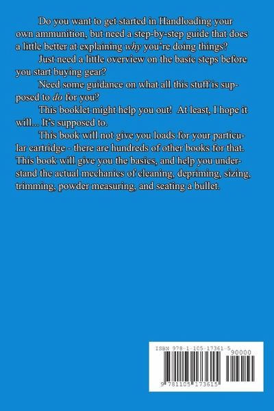 Do you want to get started in Handloading your own ammunition, but need a step-by-step guide that does a little better at explaining why you're doing things? Just need a little overview on the basic steps before you start buying gear? Need some guidance on what all this stuff is supposed to do for you? This booklet might help you out! At least, I hope it will... It's supposed to. This book will not give you loads for your particular cartridge - there are hundreds of other books for that. This book will give you the basics, and help you understand the actual mechanics of cleaning, depriming, sizing, trimming, powder measuring, and seating a bullet.