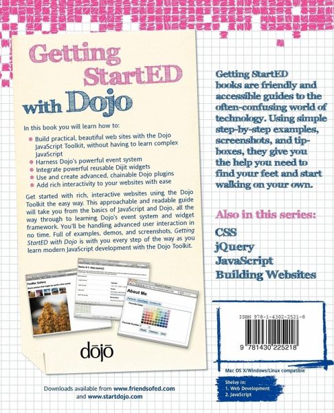 Dojo has been described as the JavaScript toolkit for programmers that's easy enough for designers to pick up. This book will introduce the foundational concepts of using Dojo to increase efficiency when developing modern websites that utilize Document Object Model (DOM) manipulation, Ajax, animations, effects, and widgets. Dojo basics Animations and effects Widgets with Dijit