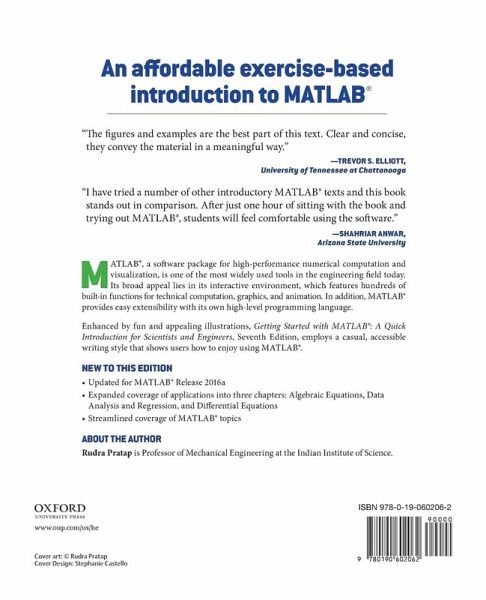 MATLAB, a software package for high-performance numerical computation and visualization, is one of the most widely used tools in the engineering field today. Its broad appeal lies in its interactive environment, which features hundreds of built-in functions for technical computation, graphics, and animation. In addition, MATLAB provides easy extensibility with its own high-level programming language. Enhanced by fun and appealing illustrations, Getting Started with MATLAB: A Quick Introduction for Scientists and Engineers, Seventh Edition, employs a casual, accessible writing style that shows users how to enjoy using MATLAB.